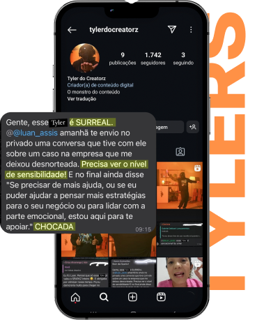 Mais que uma IA f*oda, o Tyler é um robô personalizável que criamos com base nos meus 12 anos de experiência e na forma como eu penso meus conteúdos, para otimizar a sua produção de conteúdo.